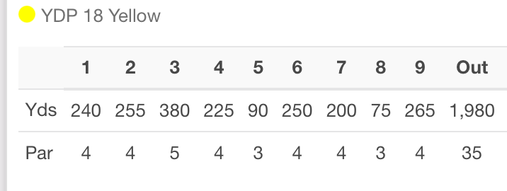The course was set up to play 4,089 yards for 18 holes. The par 4 ranged between 200 yds to 265 yds, the par 3 ranged between 75yds to 140 yds, and the par 5 ranged between 360 yds to 380 yds.
