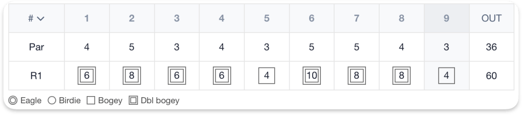 my total in the IJGA was 60.I hit my hybrid into the water that was the hole I got A 10.My favorite holes were the par 3s.My least favorite holes were par 5s.